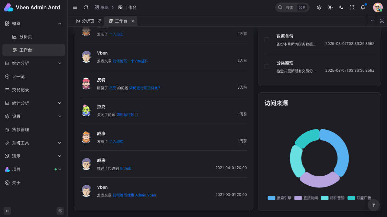- 🎯 新增综合分析仪表板,包含关键指标卡片、预算对比、智能洞察等组件