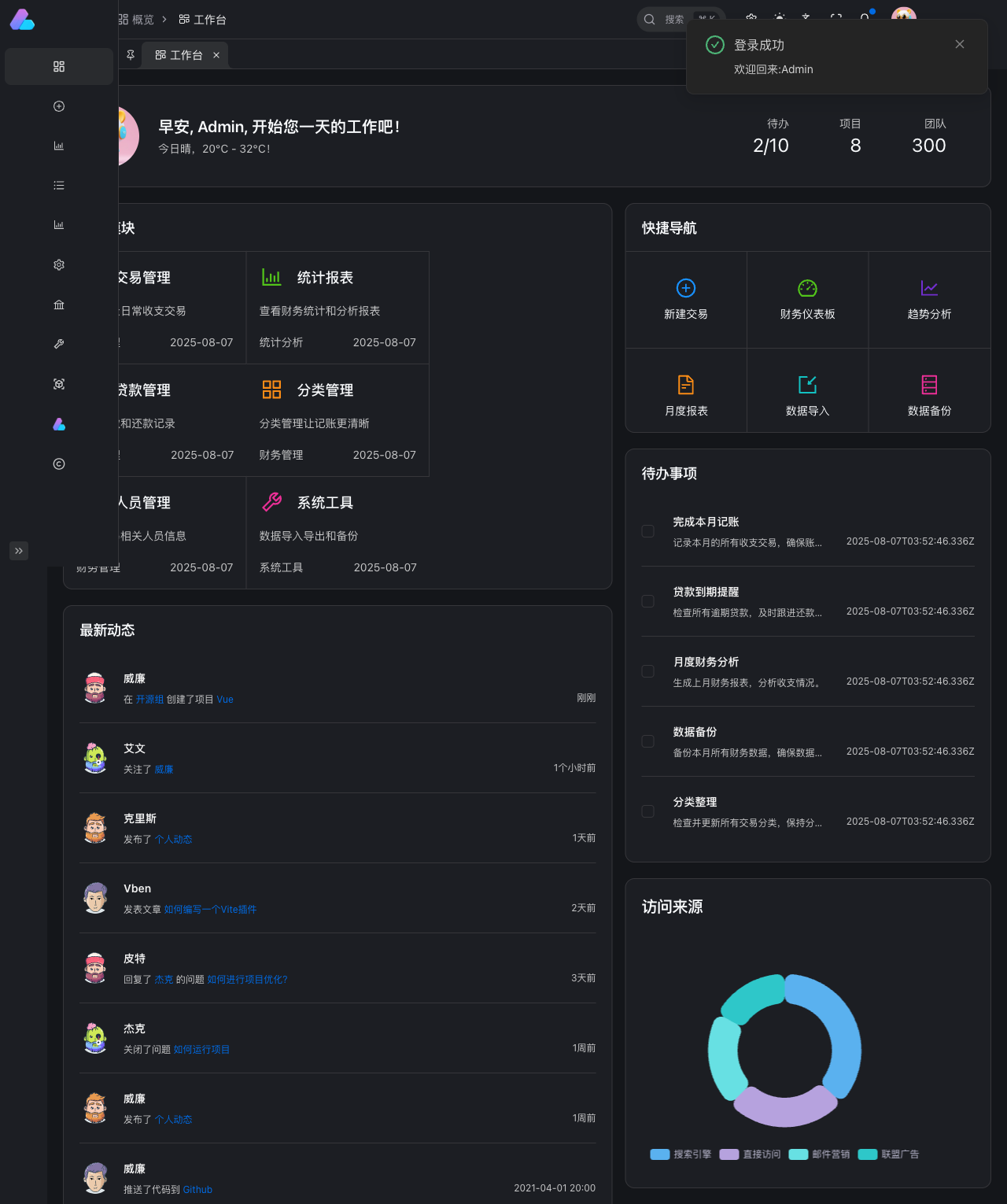 - 🎯 新增综合分析仪表板,包含关键指标卡片、预算对比、智能洞察等组件