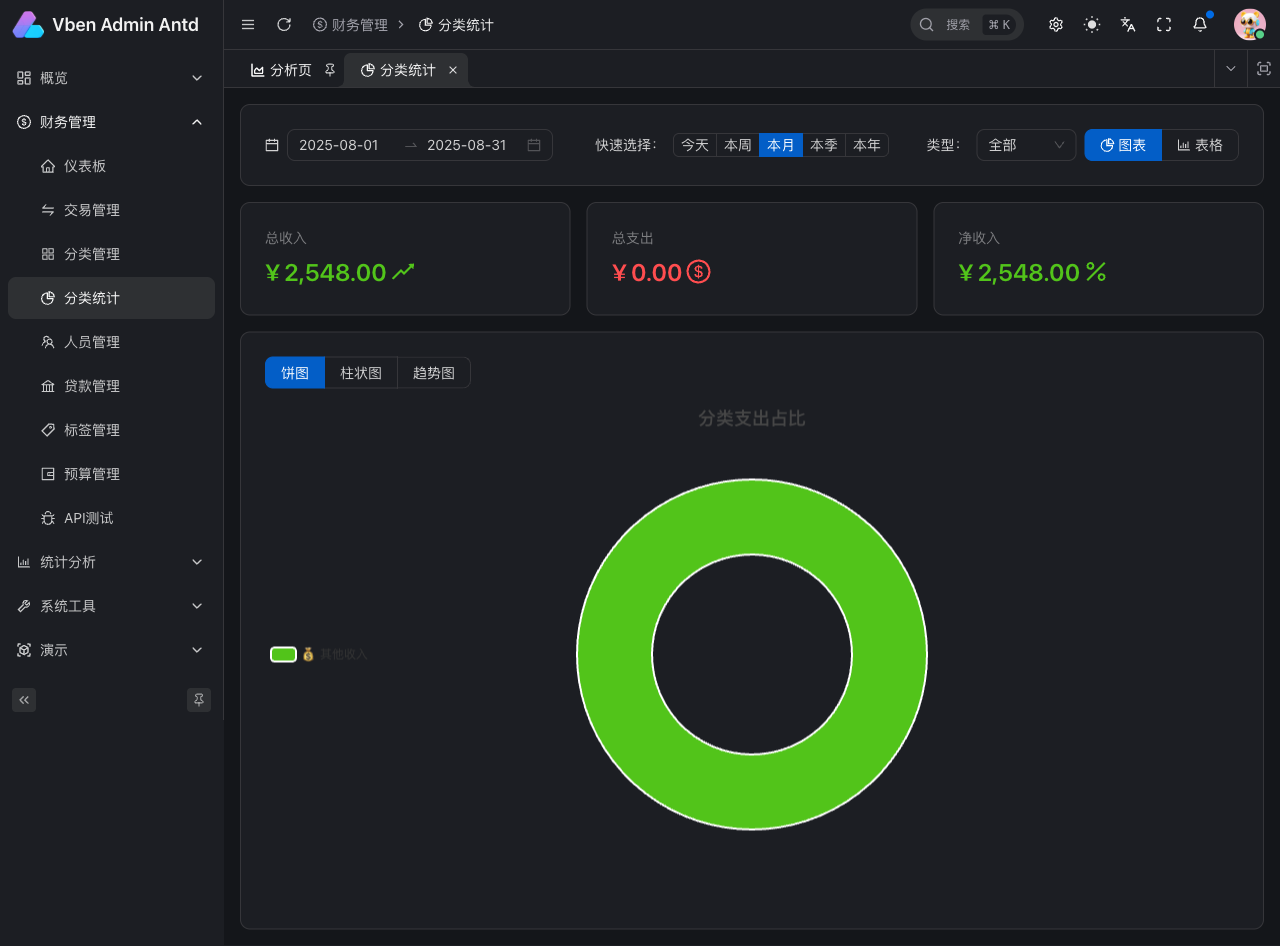 - 🎯 新增综合分析仪表板,包含关键指标卡片、预算对比、智能洞察等组件