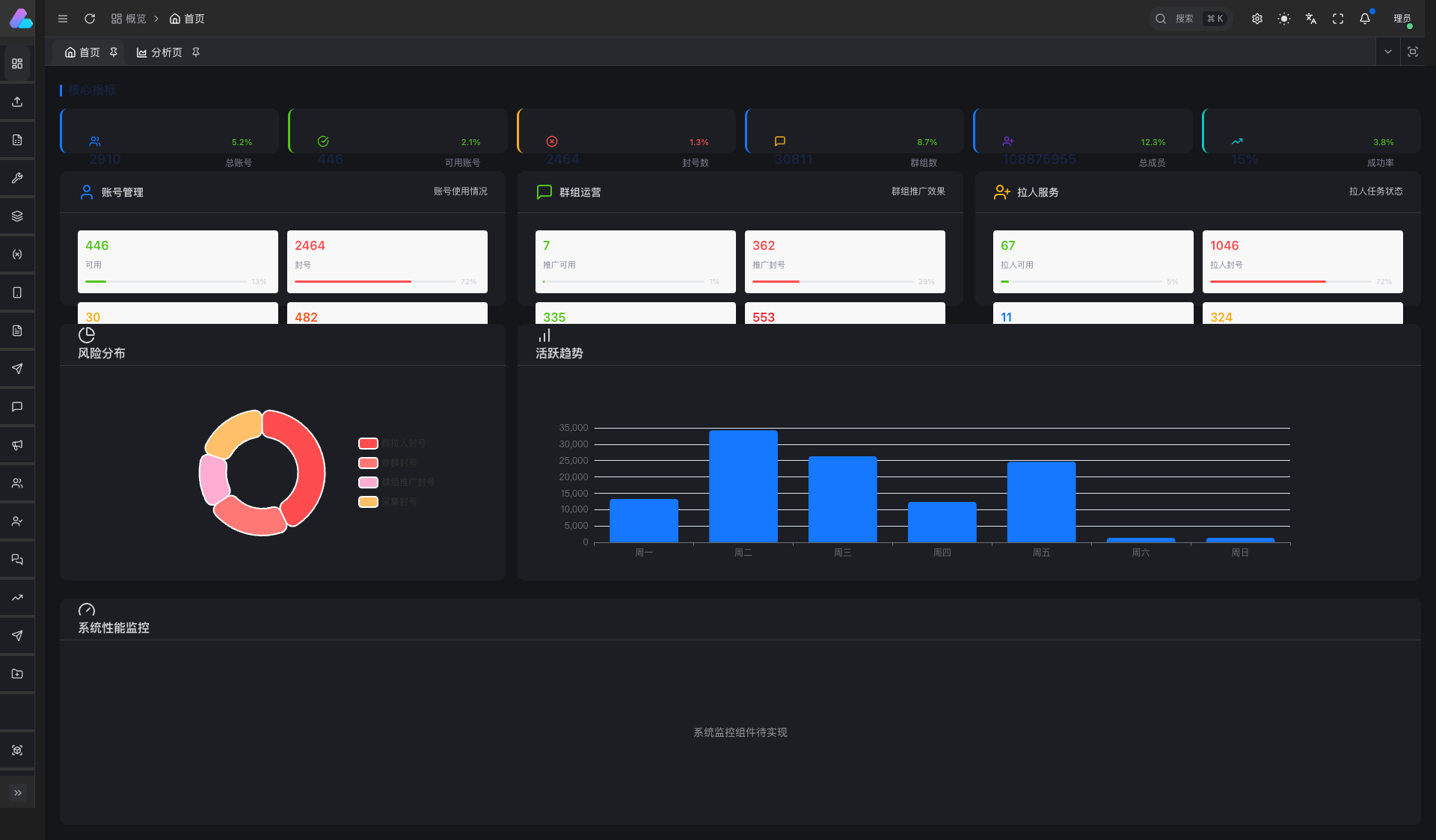 Full-stack web application for Telegram management - Frontend: Vue 3 + Vben Admin - Backend: NestJS - Features: User management, group broadcast, statistics 🤖 Generated with [Claude Code](https://claude.com/claude-code) Co-Authored-By: Claude <noreply@anthropic.com>